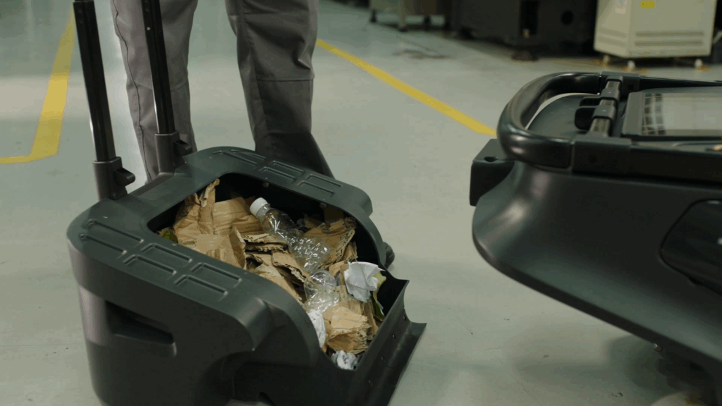 MT1は、35リットルの大容量ダストボックスを標準搭載しており、1回の運転で多くのゴミを回収可能です。