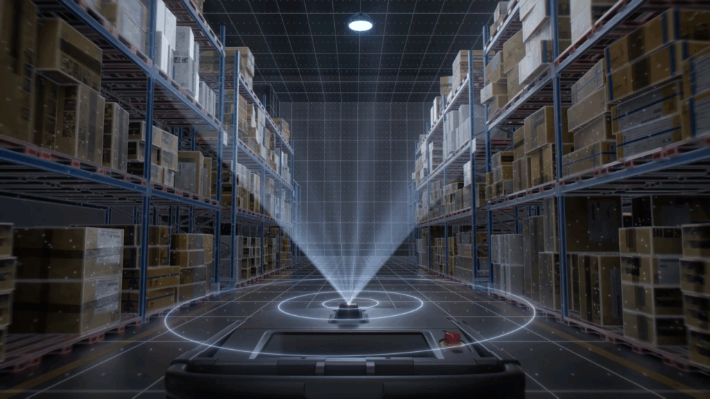 MT1は、Visual SLAM(天井画像ベースの自己位置推定)とLiDAR(レーザー測距)を融合した高度なナビゲーション技術を搭載しています。天井の構造や照明の特徴をカメラで読み取り、環境の変化にも柔軟に対応。